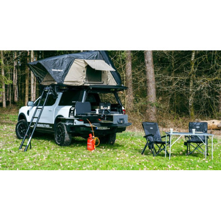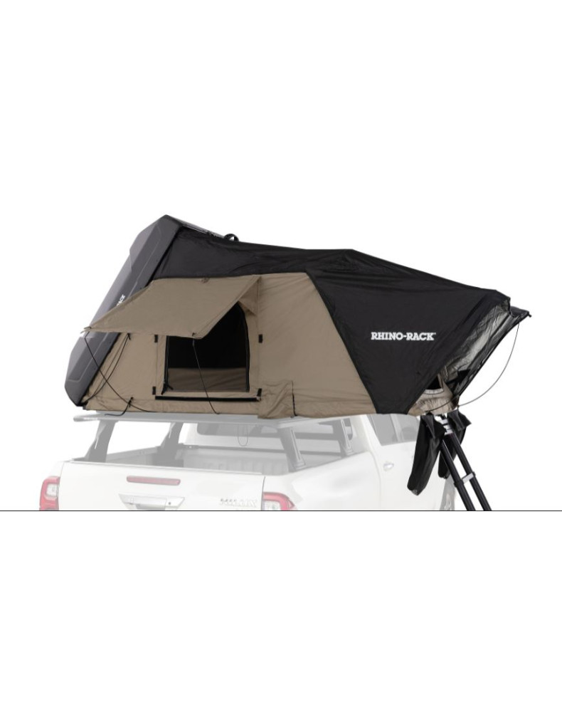 A Tenda Hardshell Rhino-Rack é perfeita para uma ou duas pessoas que procuram conforto numa escapadinha. A funcionalidade e simplicidade estão no centro do nosso design, e a tenda inclui um sistema de montagem inovador, um colchão espesso e resistente, uma luz LED e amplo espaço de arrumação dentro e sobre a estrutura da tenda.