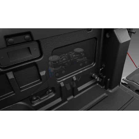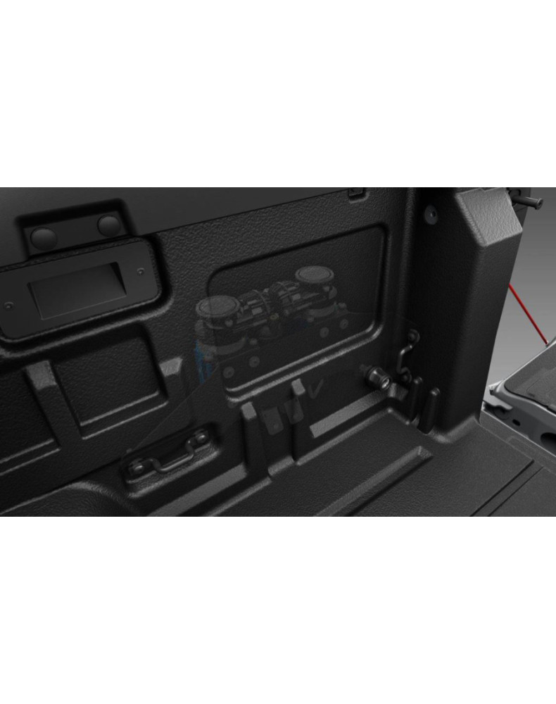 O Kit de Montagem permite a instalação do compressor de ar duplo ARB, modelo A-CKMTA, no interior da caixa de carga traseira direita.